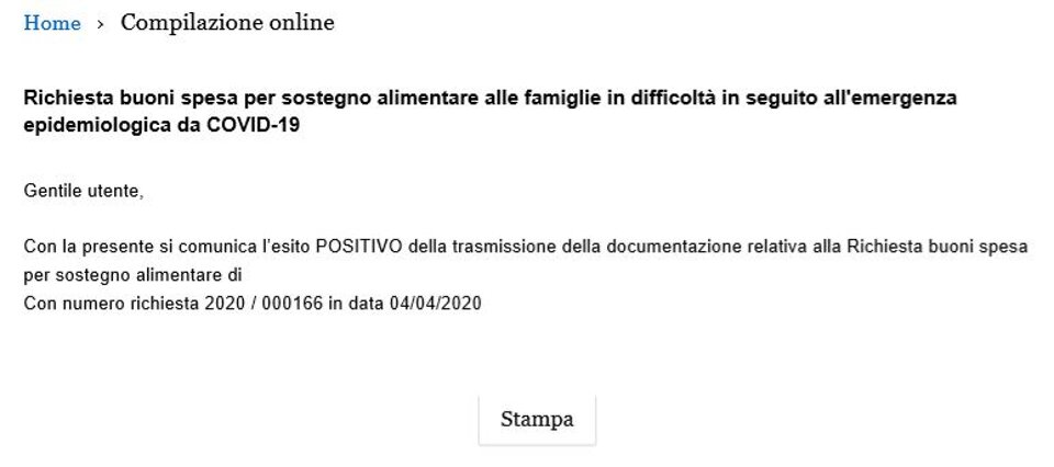 Dalla procedura informatica verranno quindi erogati i buoni che potranno essere immediatamente stampati dai beneficiari.