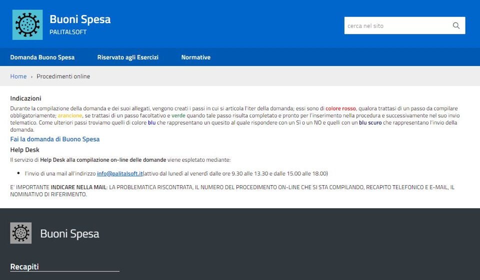 Per richiedere il buono sarà messo a disposizione una procedura informatica da “iscrivere” sul “sito” istituzionale dell’Ente che prevede la compilazione di un “modulo di autodichiarazione” che sarà immediatamente recepito dal Comune.
