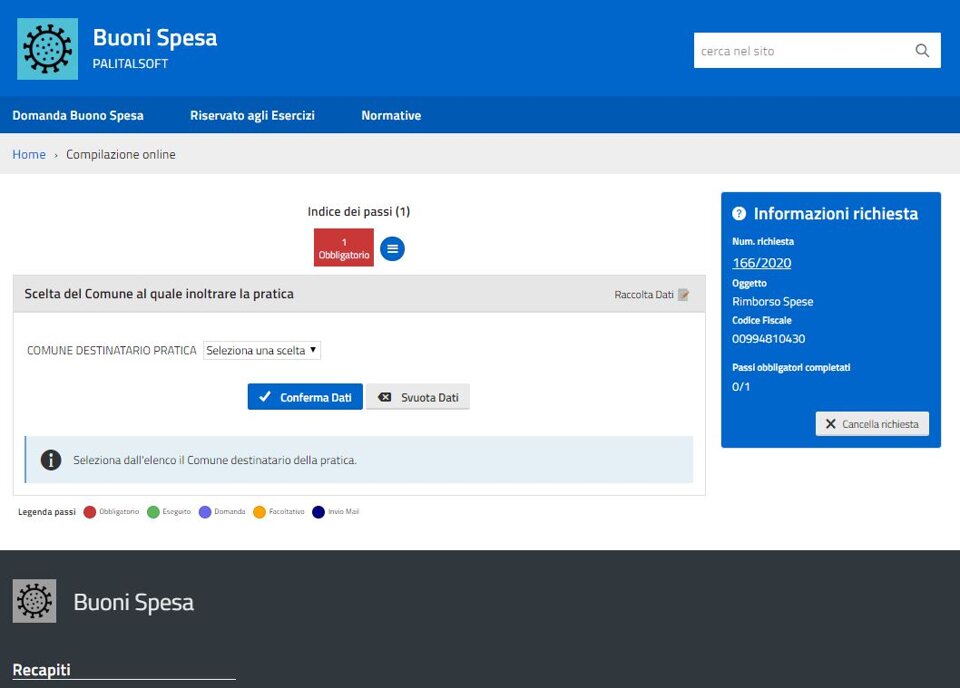 SOLUZIONE APPLICATIVA IN CLOUD PER GESTIONE DEI “BUONI SPESA” AI SENSI DELL’ORDINANZA DEL CAPO DEL DIPARTIMENTO DELLA PROTEZIONE CIVILE N.658 DEL 29/03/2020.